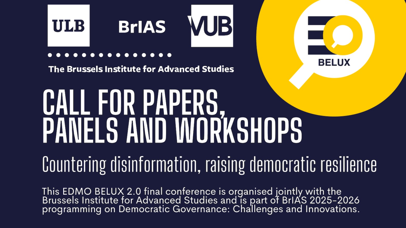 EDMO BELUX 2.0 is a co-financed Digital Europe project, under Grant Agreement number 101158785. This EDMO BELUX 2.0 final conference is organised jointly with the Brussels Institute for Advanced Studies and is part of BrIAS 2025-2026 programming on Democratic Governance: Challenges and Innovations.