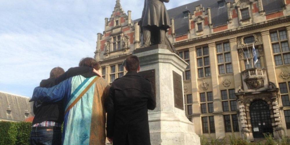 Verhaegen was a practical man, which came in handy during the establishment of VUB: he had connections as a politician, a freemason and lawyer, and knew how to inspire people to raise money for the university. It was 1888 when students first went to the statue of Verhaegen to salute him as a hero. Scheelings: “That was because of discontent among the students over what was happening at their university. In the beginning there was a Catholic government, which mainly supported Catholic education. The freedom of inquiry and education were under pressure. And the fact that there were a lot of conservative liberals on the board caused a lot of resentment. There were lots of progressives among the students, who wanted more participation and democracy. They made speeches and went with flags and banners to the statue of Verhaegen. He embodied their ideals of free, independent inquiry.”