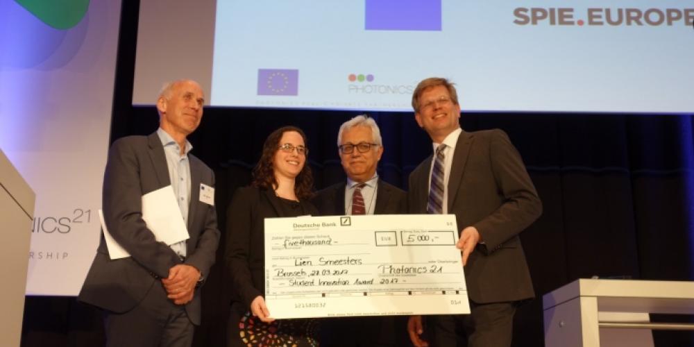 Lien Smeeters received the award for her research investigating the use of optical spectroscopy for the detection of carcinogens in food products, and for the impact of her research on the photonics industry.
