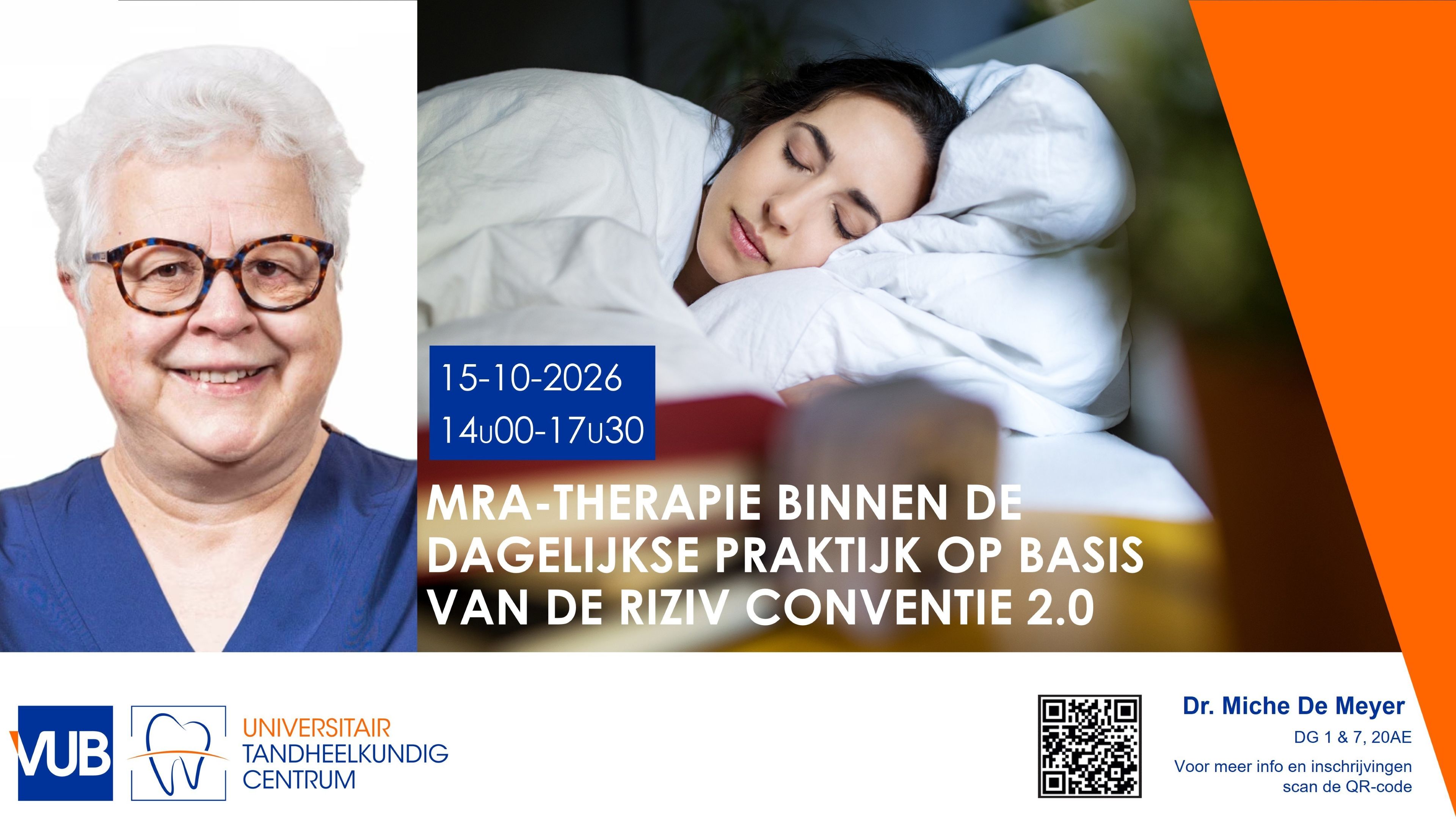 Aan de hand van evidence-based richtlijnen worden de pathofysiologie van OSA, patiënten selectie, diagnostische criteria en samenwerking met de slaapgeneeskunde besproken. Er wordt uitgebreid ingegaan op de praktische aspecten van MRA-therapie: type toestellen, klinische registratie, titratie, mogelijke nevenwerkingen en lange termijn opvolging. Daarnaast wordt het administratief en juridisch kader van de RIZIV-conventie 2.0 verduidelijkt, met aandacht voor documentatie, terugbetalingsvoorwaarden en kwaliteitsbewaking.