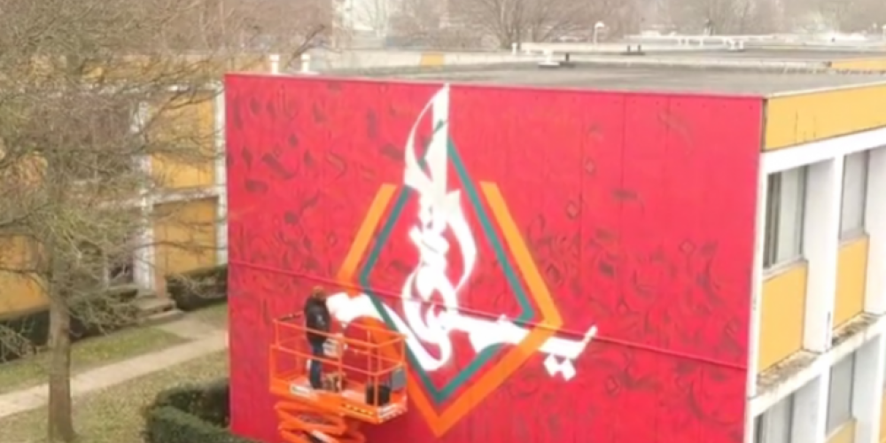 Zijn kalligraffiti, een krachtige mengvorm van Arabische kalligrafie en graffiti, is een spraakmakend tegengif voor vlak en grijs.