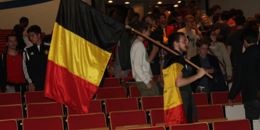 In het Atrium van campus Jette werd de eerste EK-wedstrijd van België op het grote scherm getoond, net zoals in aula Q op Campus Etterbeek. De opkomst was groot, in Etterbeek schat men zelfs op zo’n 600 mensen. De VUB droeg samen met de Studentenraad en studentenkringen Antverpia en Limburgia de verantwoordelijkheid voor de organisatie. De sfeer was uitstekend en er werd zelfs een wave ingezet.