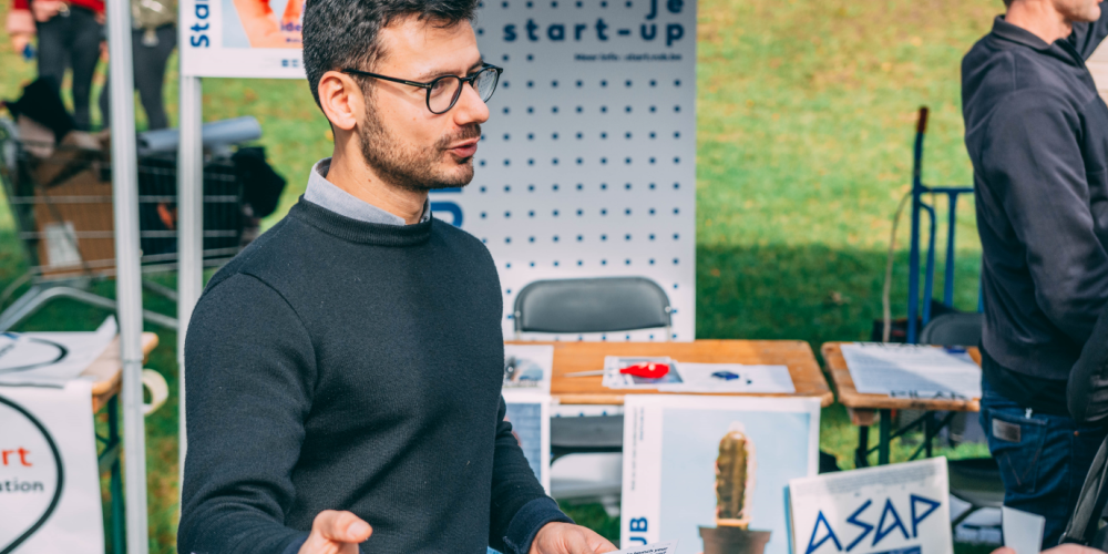 Met de jaren merkte Alexis dat hij liefst met mensen en projecten bezig is. Sinds 2018 gebruikt hij de ervaring die hij opdeed in die eerste jaren om nu zelf student-entrepreneurs te coachen. Dat doet hij met Start.VUB, samen met Marc Goldchstein en Thomas Crispeels. “Onze VUB-studenten zijn best wel ondernemend. Uit onze survey in 2018 bleek dat meer dan 300 studenten interesse hadden in het starten van een onderneming. Zo’n 85 daarvan hadden al concrete plannen. Die jonge ondernemers begeleiden we met een incubatieprogramma; we coachen hen persoonlijk met feedback op hun businessplan, we bieden hen een plek in onze co-working ruimte op Usquare en toegang tot een pool van mentoren en boekhoudkundige en juridische experts – dat zijn dan mensen van de VUB en alumni –, we organiseren workshops en netwerkevents. Maar toen kwam de COVID-19 ertussen.”