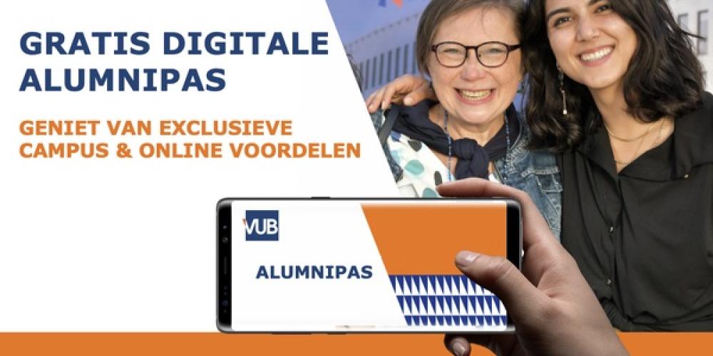 Met de geprinte Alumnipas konden VUB-alumni genieten van tal van voordelen en kortingen op onze campussen (Resto-maaltijden tegen studententarief, 50% korting op een Basic Fit jaarabonnement, voordelig gebruik van het zwembad en onze andere VUB-infrastructuur). De universiteit heeft hard gewerkt om de pas in een nieuw digitaal jasje te steken en de voordelen voor haar alumni uit te breiden. Het resultaat is de nieuwe digitale Alumnipas: een gratis kortingskaart waarmee oud-studenten naast campus benefits nu ook genieten van online benefits.