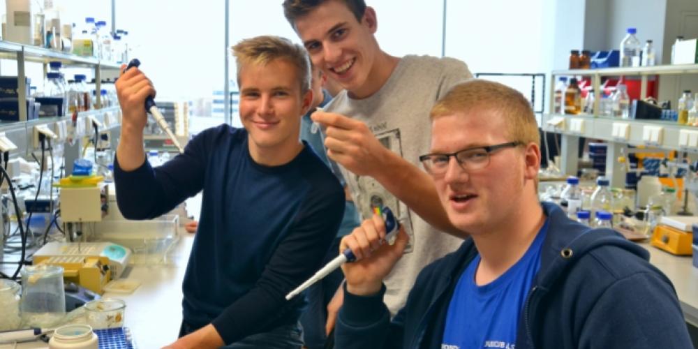 "Theorie vind ik altijd wat minder interessant, maar de praktijk is leuk, zeker alle proefjes van vandaag" was de conclusie van een leerling van het KA Emmanuel Hiel. Michaël, Ewout en Evert (titelfoto), vonden het leuk dat ze dingen deden die ze op school niet doen. "De DNA-extractie was superinteressant", zeiden de leerlingen uit Boom.