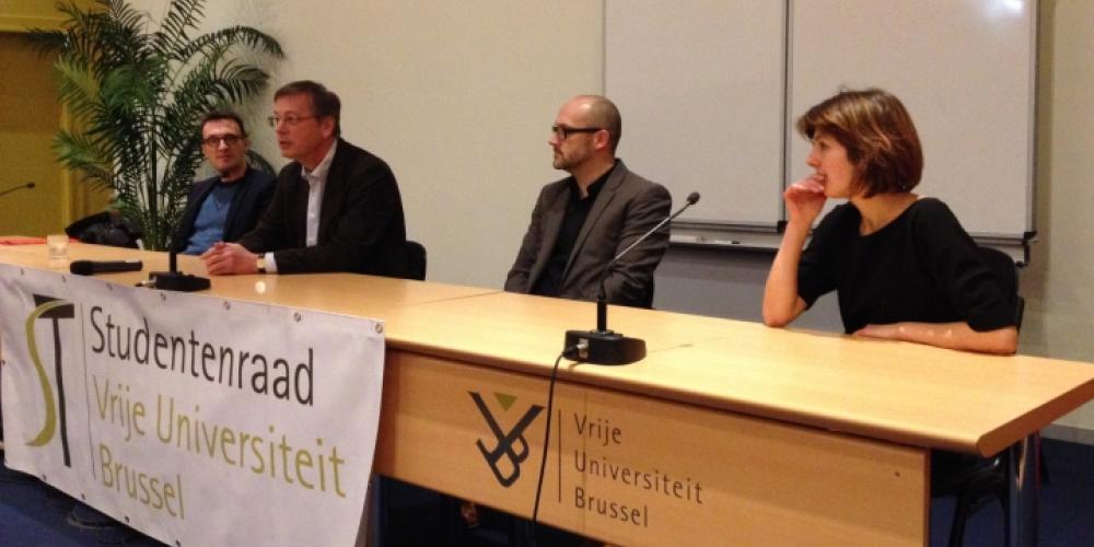 Met mobiliteitsminister Pascal Smet (Brussels Hoofdstedelijk Gewest), voorzitter Jan Flament (UZ Brussel en Brussels Health Campus) en mobiliteitscoördinator Rebecca Lefevere (VUB) hadden onze studenten een aardige affiche voor hun mobiliteitsdebat bijeengefietst. De minister mocht de spits afbijten en trok het mobiliteitsverhaal open naar een ruimtelijke toekomstvisie voor Brussel als een stad op mensenmaat. Jan Flament deed hetzelfde op campusniveau, maar focuste vooral op concrete oplossingen voor de huidige verkeersindigestie. De centrale vraag blijft daarin waar de plaats is voor de auto in een verhaal van stedelijke ontwikkeling op mensenmaat. Rebecca Lefevere reikte alvast enkele concrete realisaties voor duurzame alternatieven aan.