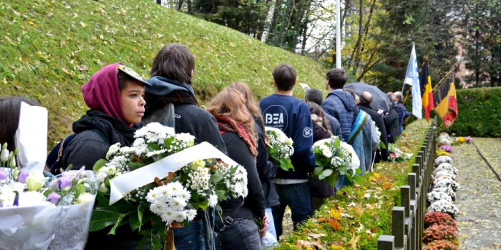 Vier autobussen met de universitaire autoriteiten, personeelsleden en studenten van ULB en VUB volgden een parcours dat o.a. leidde langs de Nationale Schietbaan voor een bloemenhulde voor de gefusilleerde studenten die in het verzet zaten tijdens WOII, langs de begraafplaats van Brussel voor de bloemenhulde aan het graf van stichter Théodore Verhaegen, langs de Square G op de ULB-campus voor een bloemenhulde bij het monument van verzetsgroep ‘Groupe G’ om ten slotte te eindigen bij de het monument voor Francisco Ferrer en het standbeeld van Théodore Verhaegen voor het oude rectoraat van de ULB. De bloemenhuldes verliepen zoals altijd ingetogen.