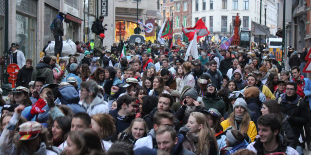 Wanneer het Brusselse centrum plots ingepalmd wordt door duizenden studenten met witte jassen en grote klakken betekent dat maar één ding: St-V. De jaarlijkse hoogmis van de Brusselse universiteiten VUB en ULB lokte vorige week zo’n 4.000 studenten. Dat blijkt uit een telling van de Brusselse politie. Tijdens St-V wordt de stichter Pierre-Théodore Verhaegen herdacht. Hij was destijds een hevige pleiter van vrij onderzoek, waarvoor hij vandaag nog steeds geprezen wordt. Jaarlijks bedenken de studenten ook een thema, en voor de jubileumeditie (185 jaar ULB en 50 jaar VUB) wilden ze de aandacht vestigen op het groeiend aantal daklozen in Brussel. Na de feestelijke taferelen op de Grote Zavel trok de studententoet naar het Muntplein. Lees meer op bruzz.be.