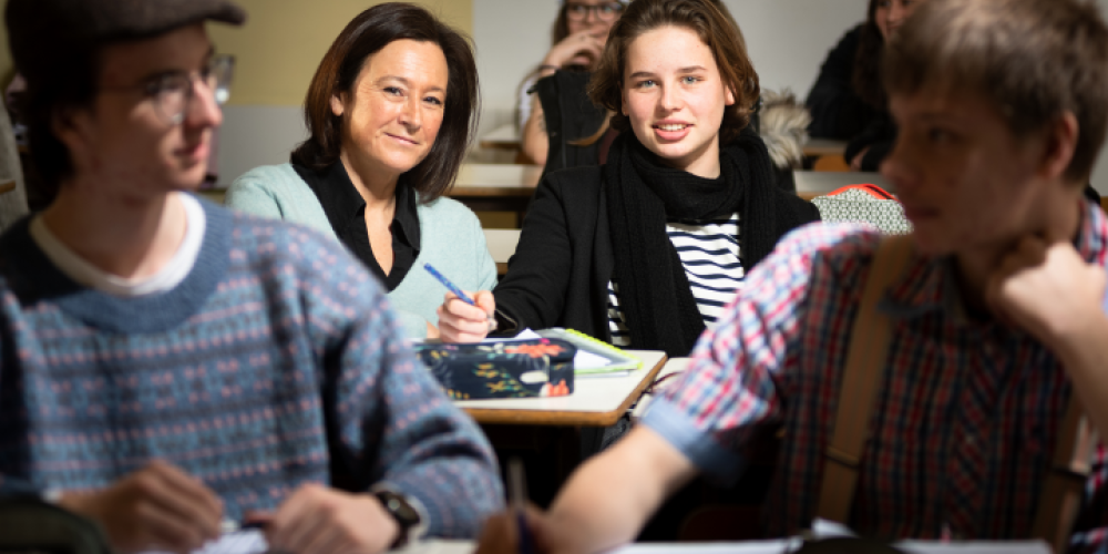 Het initiatief voor de Youth for Climate-actie kwam van twee leerlingen van de school waar Jessie Feyen het hoofd van is, het Koninklijk Atheneum in Mortsel. Anuna De Wever (17) en Kyra Gantois (19) studeren er humane wetenschappen en zijn intussen uitgegroeid tot de twee woordvoerders van de actie. Toeval is het niet dat de actie net bij hen startte, zegt Feyen. “Het zijn heel vaak meisjes die het voortouw nemen bij acties, valt mij op. Zij zijn vaak degenen die zich laten horen en bekommerd zijn over heel wat zaken. Maar het heeft ook te maken met waar we als school voor staan. We zijn een school van het GO! onderwijs van de Vlaamse Gemeenschap, wat wil zeggen dat we leerlingen hebben die mondig zijn, die geleerd worden om kritisch te zijn, om hun mening te uiten, om duidelijk te maken waar ze voor staan, maar dat ook op een respectvolle manier te doen. Die kritische houding stimuleren we in alle vakken. In de humane wetenschappen krijgt die houding meer concreet gestalte in het vak samenleven, waar ze aangemoedigd worden om kritisch naar de maatschappij te kijken. Collega’s van andere netten zijn daar ook mee bezig, maar wij leggen daar toch extra de nadruk op.”
