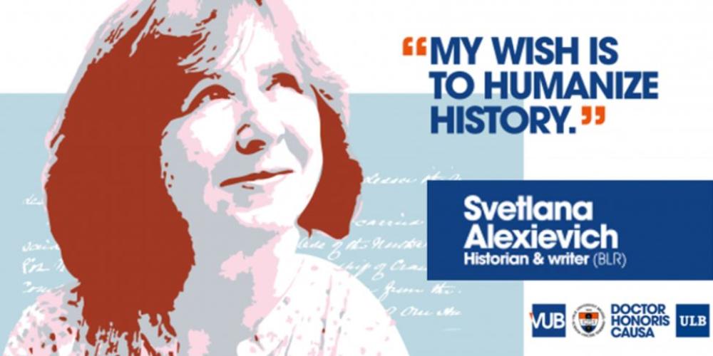 Met de toekenning van een eredoctoraat aan Svetlana Aleksijevitsj willen de VUB en ULB eer betonen aan een auteur die voor zichzelf denkt, vrij spreekt en vrij handelt. Een auteur die bovendien een stem geeft aan diegene waarvan de stem niet vaak wordt gehoord. In haar zoeken naar waarheid deinst ze er niet voor terug, met gevaar voor eigen leven, op zoek te gaan naar de ongemakkelijke feiten en gebeurtenissen die uit de officiële geschiedschrijving worden geschrapt.