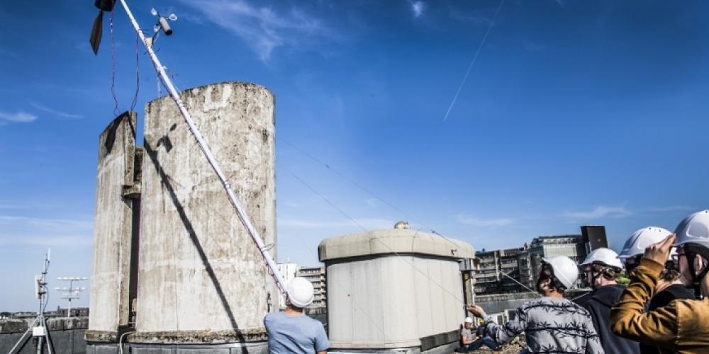 Dat er windturbines op het dak van het rectoraatsgebouw staan, is uitzonderlijk. Het door Renaat Braem ontworpen modernistische gebouw is geklasseerd als beschermd gebouw en een onvervalst landmark van de VUB-campus en de stad Brussel. Daarom prijken de windturbines slechts een week op het dak.