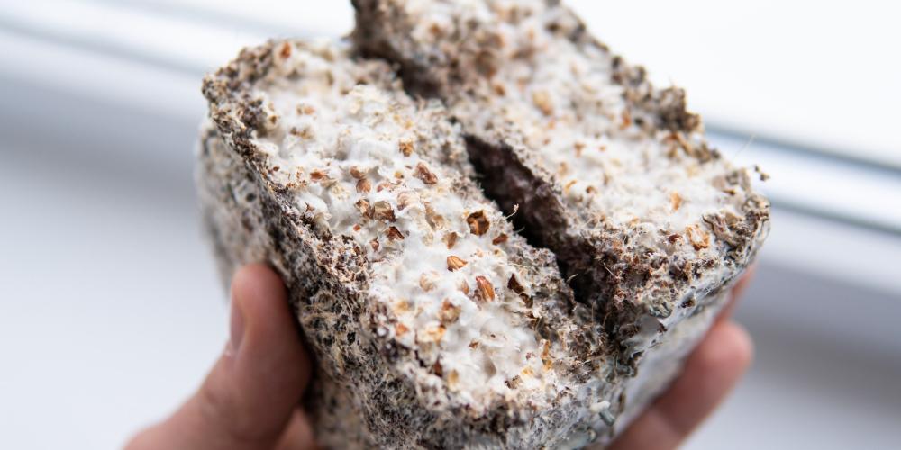 Adidas pakte onlangs uit met de sneaker 'gemaakt van paddenstoelen', mycelium krijgt langzaam maar zeker meer aanhangers. Elsacker ziet in het eigenaardige materiaal potentiëel om de vervuiling van de bouwindustrie te verminderen. "Je kan het zowel in een vloeibaar medium als op een vast substraat doen groeien. Na een week of twee wordt het mycelium geoogst, gedroogd of verhit op 60 graden. In het proces sterft het levende organisme en heb je biomateriaal dat je verder kan behandelen." Volgens onderzoek zou mycelium snel afbreken in de bodem en geen negatieve gevolgen hebben op de natuur.